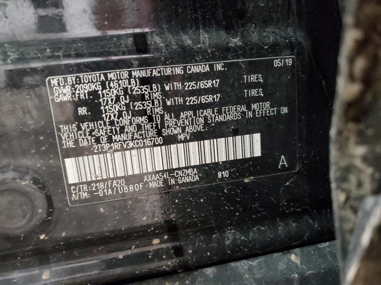 - ВИН: 2T3P1RFV3KC******