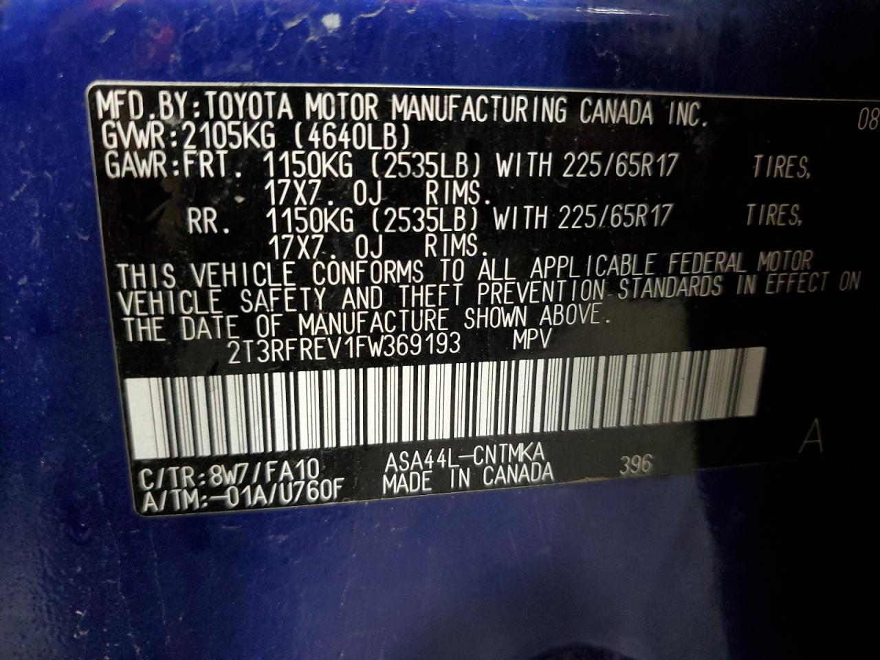 - ВИН: 2T3RFREV1FW******