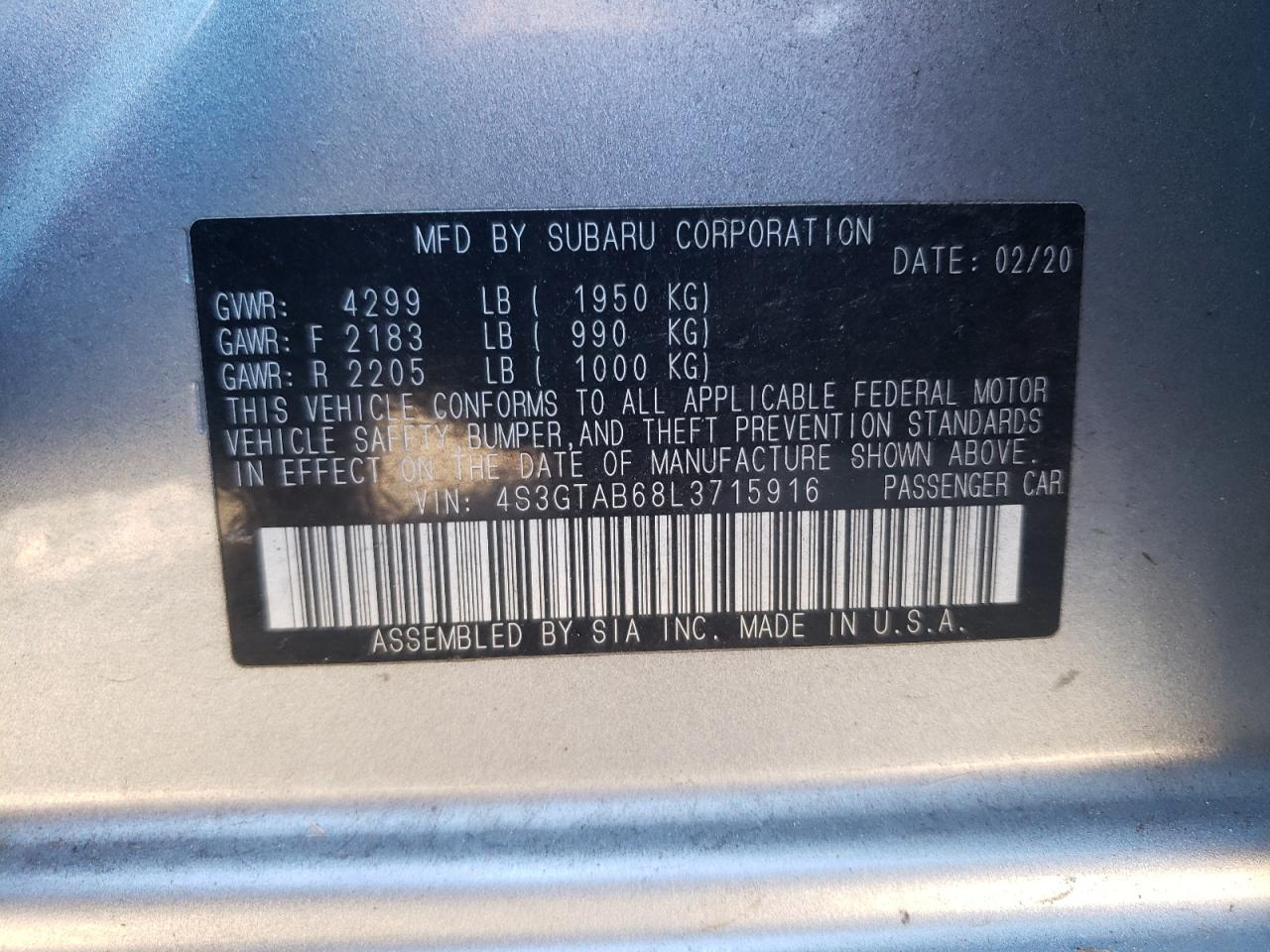 - ВИН: 4S3GTAB68L3******