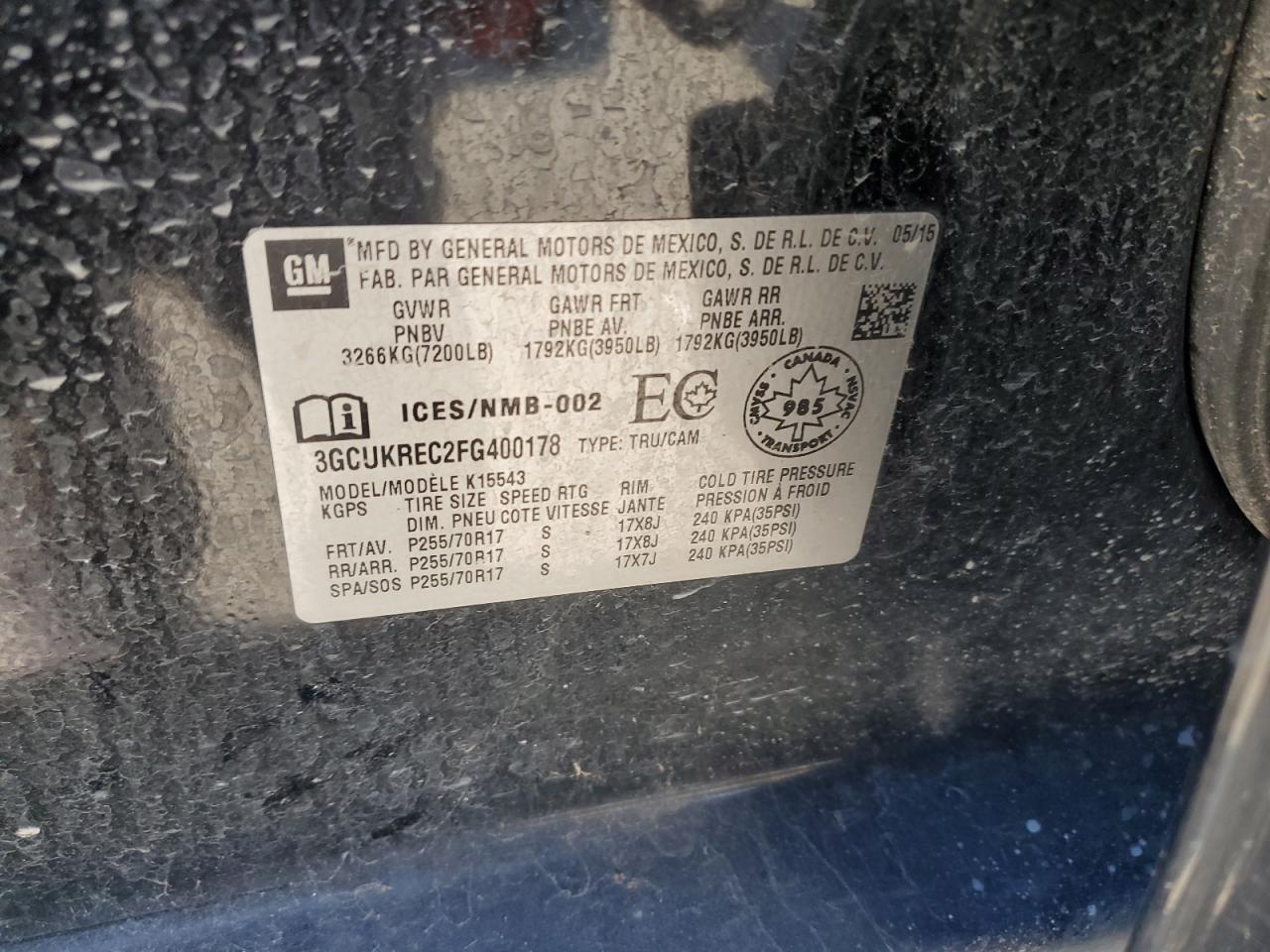 - ВИН: 3GCUKREC2FG******