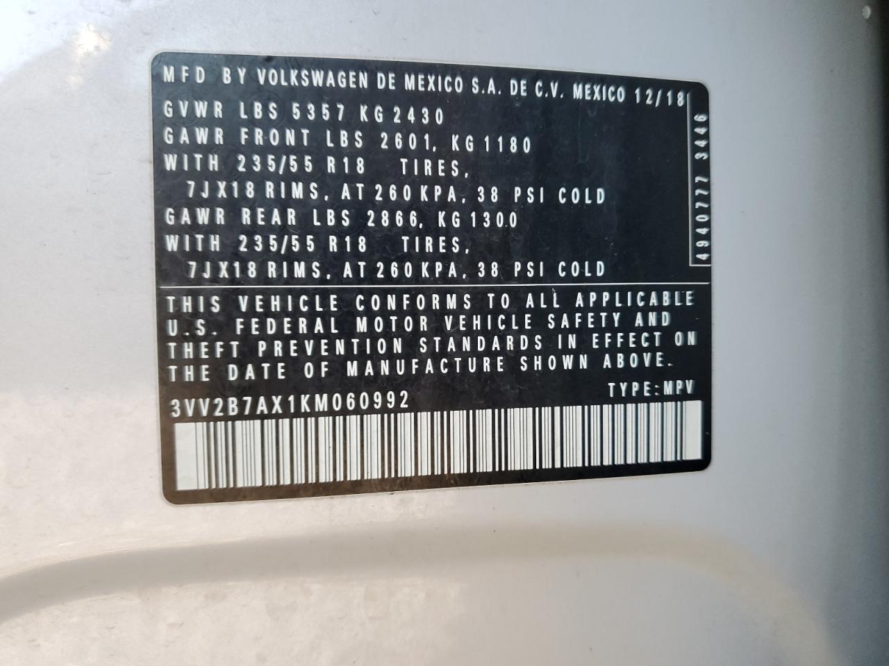 - ВИН: 3VV2B7AX1KM******