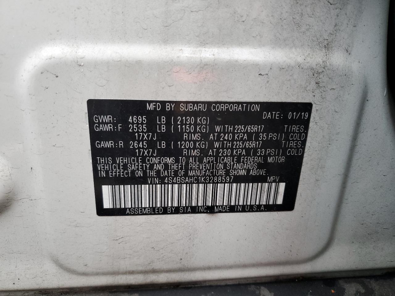 - ВИН: 4S4BSAHC1K3******