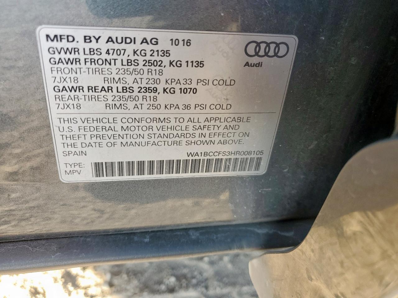 - ВИН: WA1BCCFS3HR******