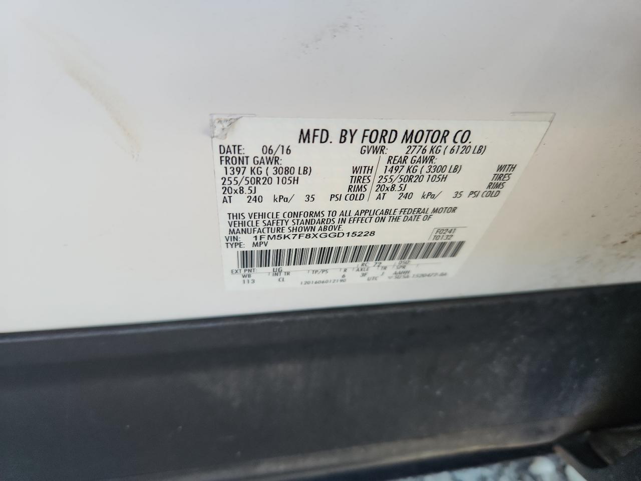 - ВИН: 1FM5K7F8XGG******