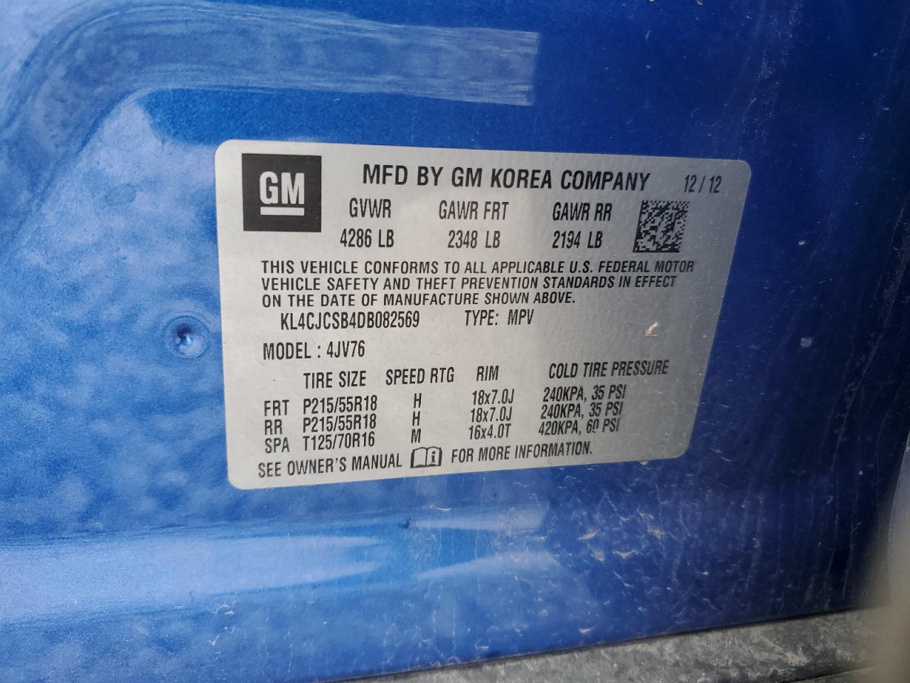 - ВИН: KL4CJCSB4DB******