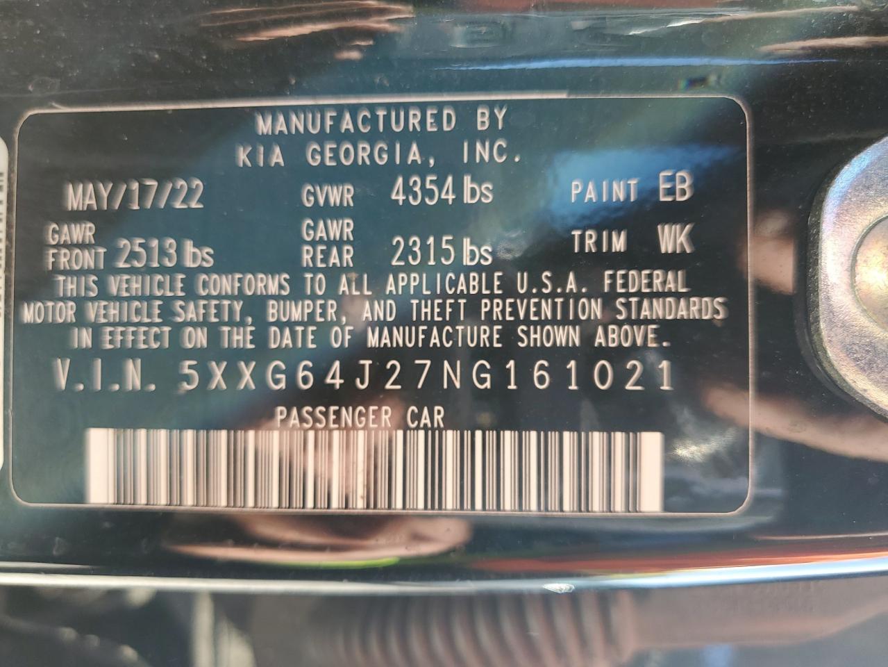 - ВИН: 5XXG64J27NG******