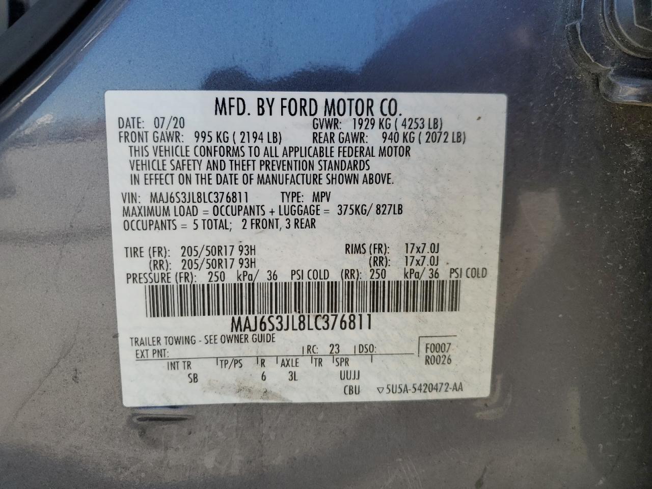 - ВИН: MAJ6S3JL8LC******