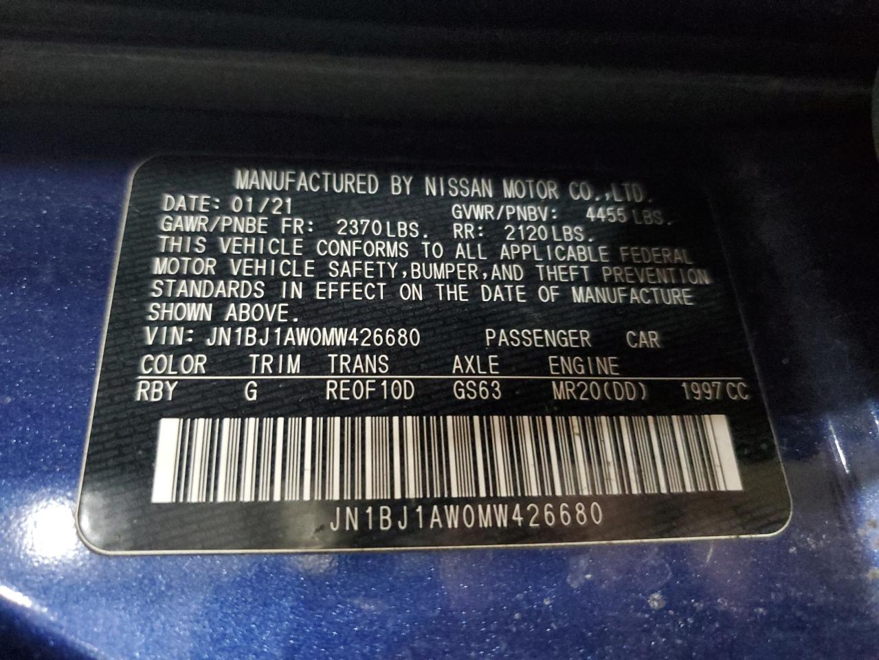 - ВИН: JN1BJ1AW0MW******
