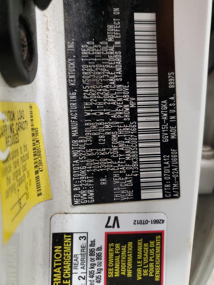 - ВИН: 4T3BK3BB5CU******