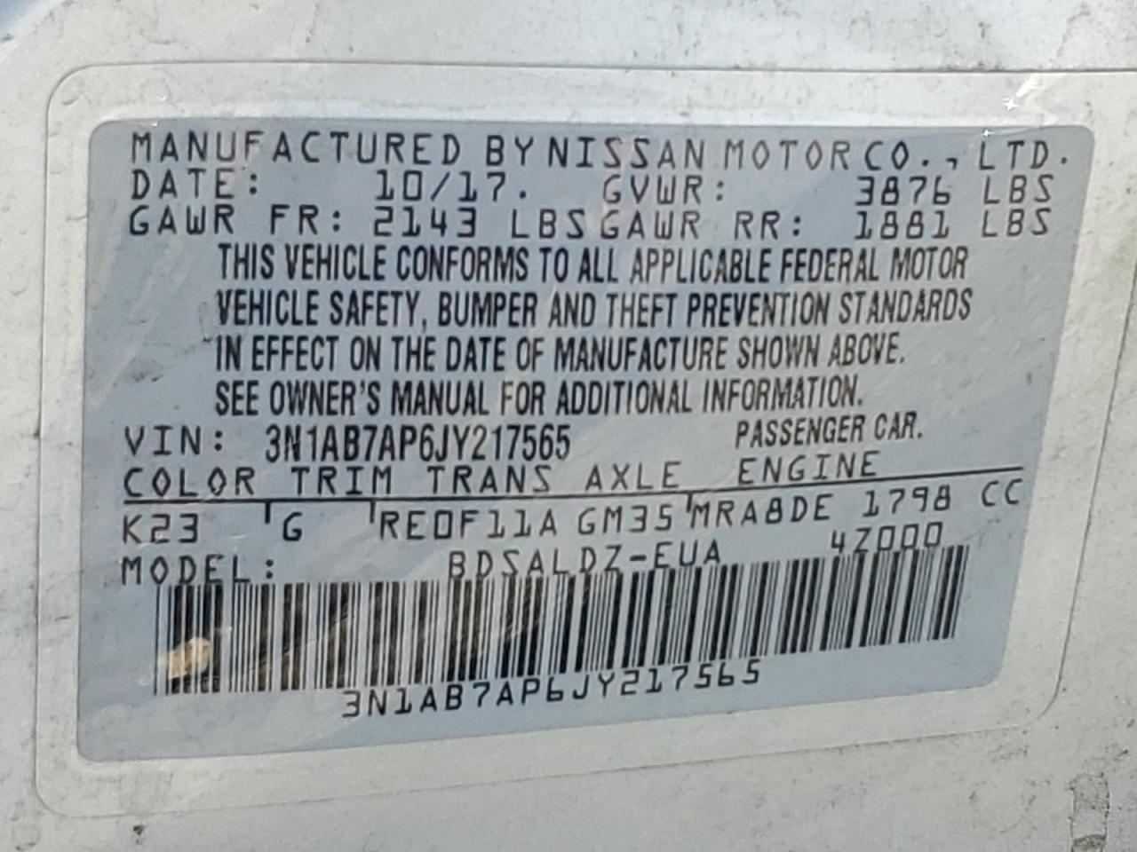 - ВИН: 3N1AB7AP6JY******