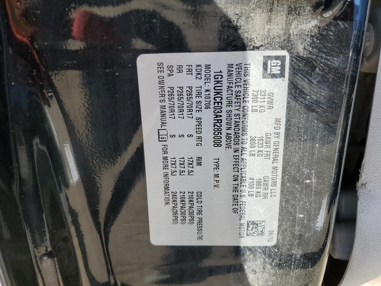 - ВИН: 1GKUKCE03AR******