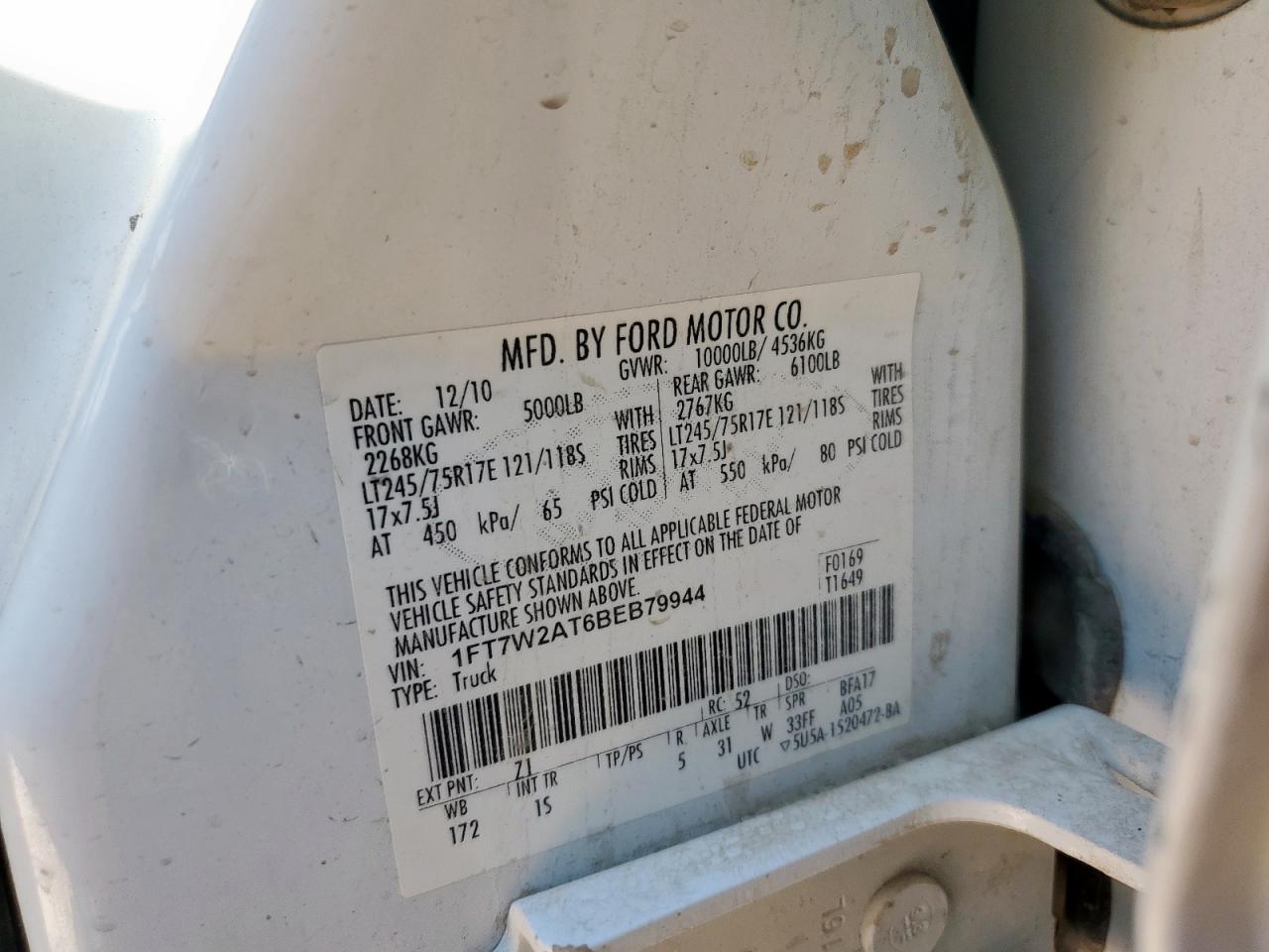 - ВИН: 1FT7W2AT6BE******