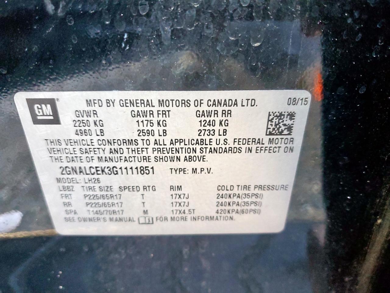 - ВИН: 2GNALCEK3G1******