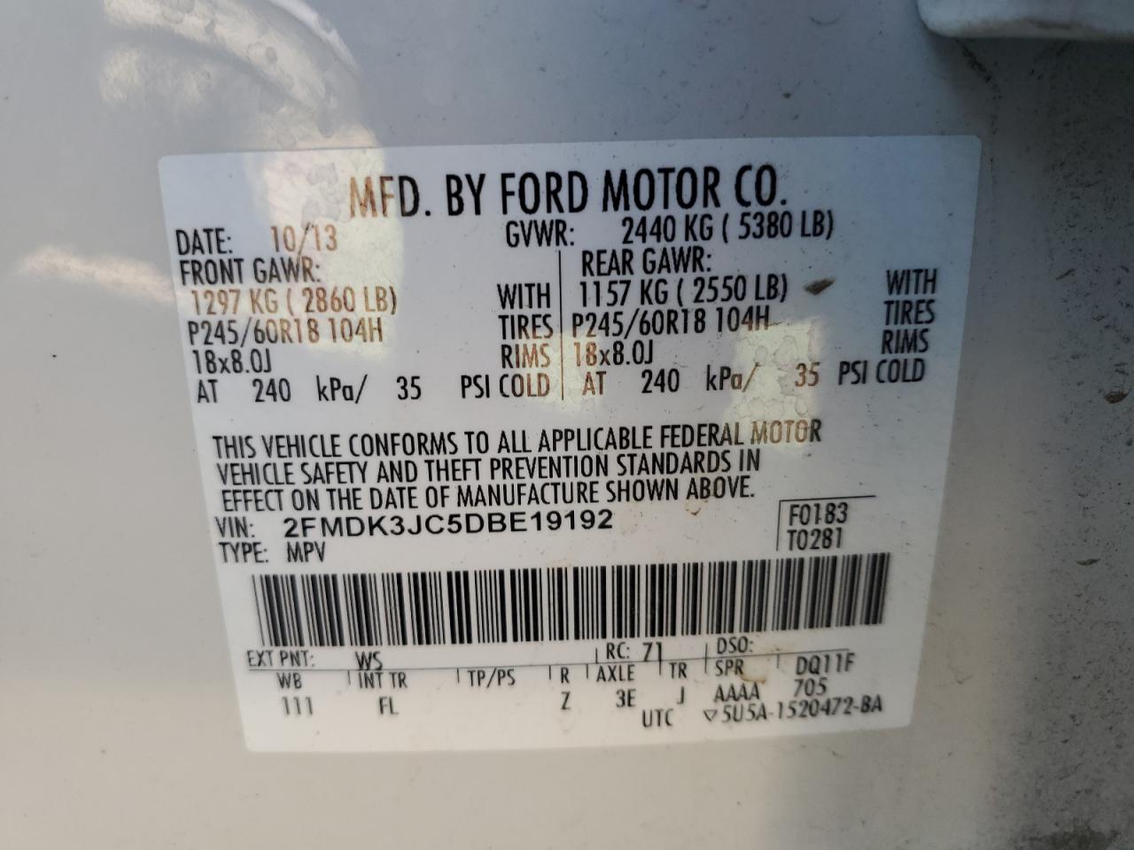 - ВИН: 2FMDK3JC5DB******
