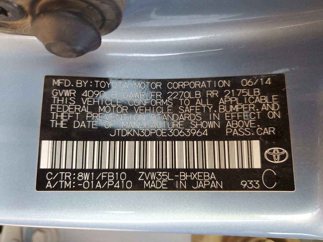 - ВИН: JTDKN3DP0E3******