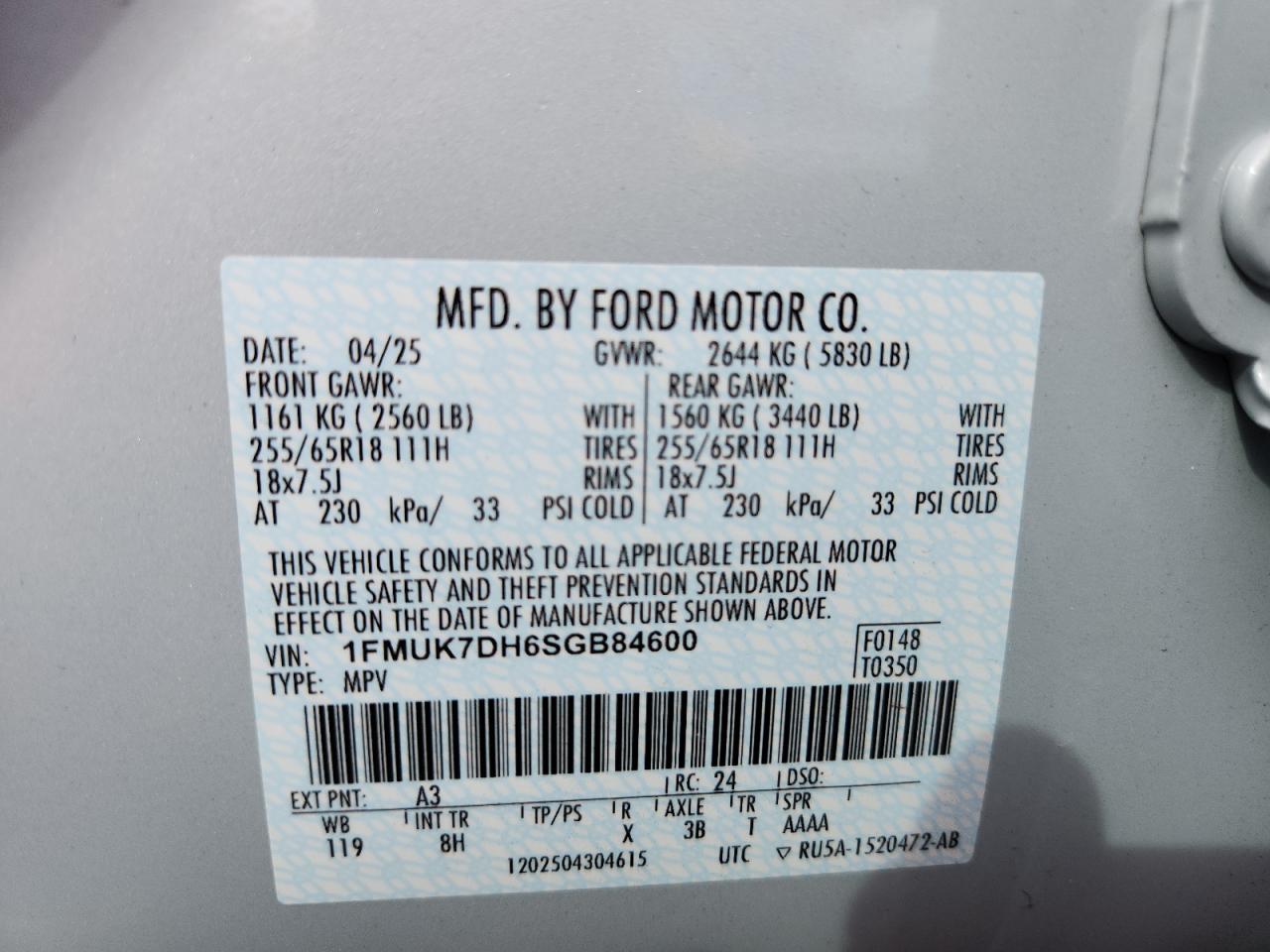 - ВИН: 1FMUK7DH6SG******