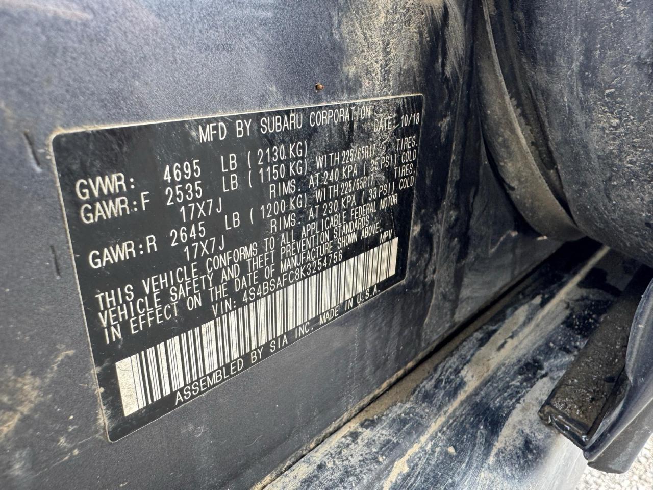 - ВИН: 4S4BSAFC8K3******