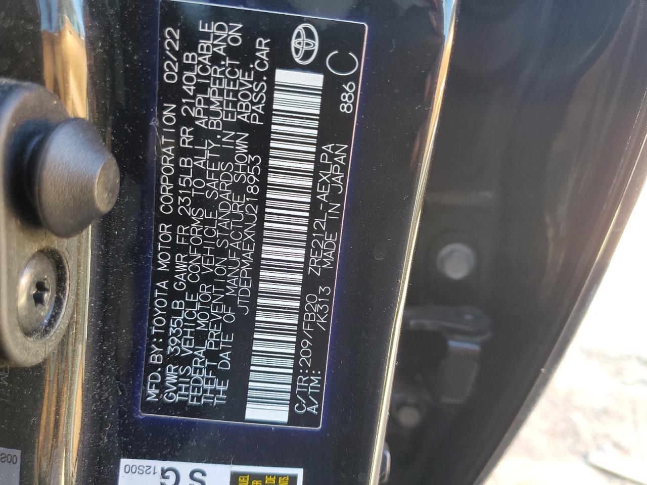 - ВИН: JTDEPMAEXNJ******