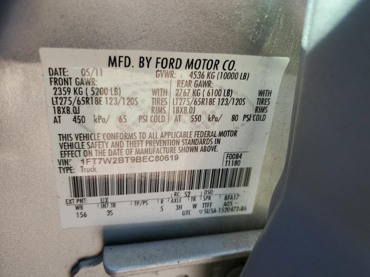 - ВИН: 1FT7W2BT9BE******