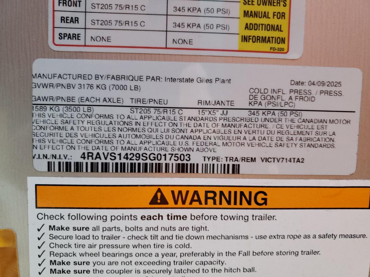 2025 INTERSTATE VICTV714TA2 ENCLOSED CARGO TRAILER из США