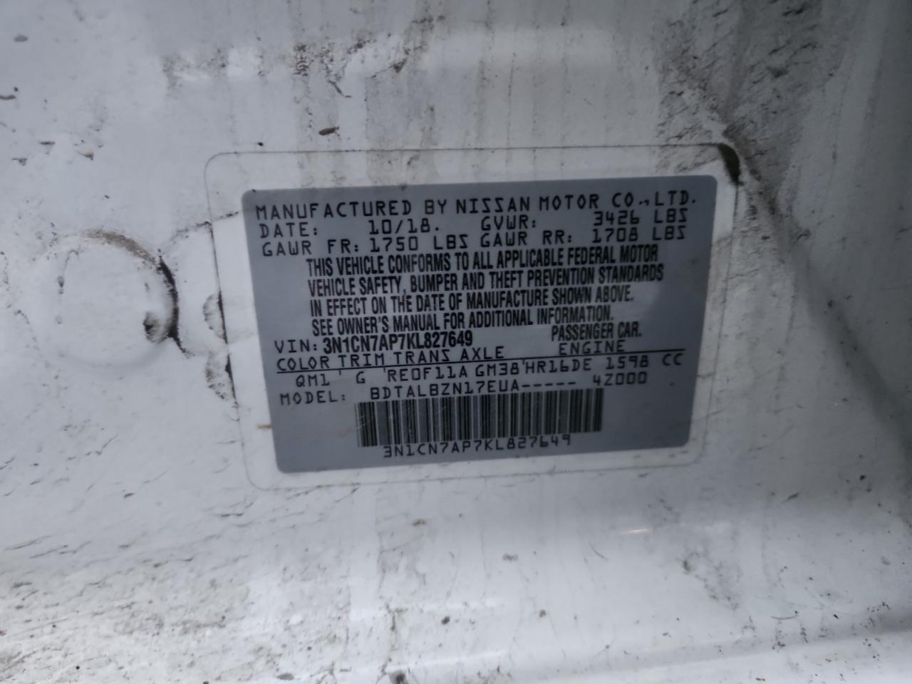 - ВИН: 3N1CN7AP7KL******