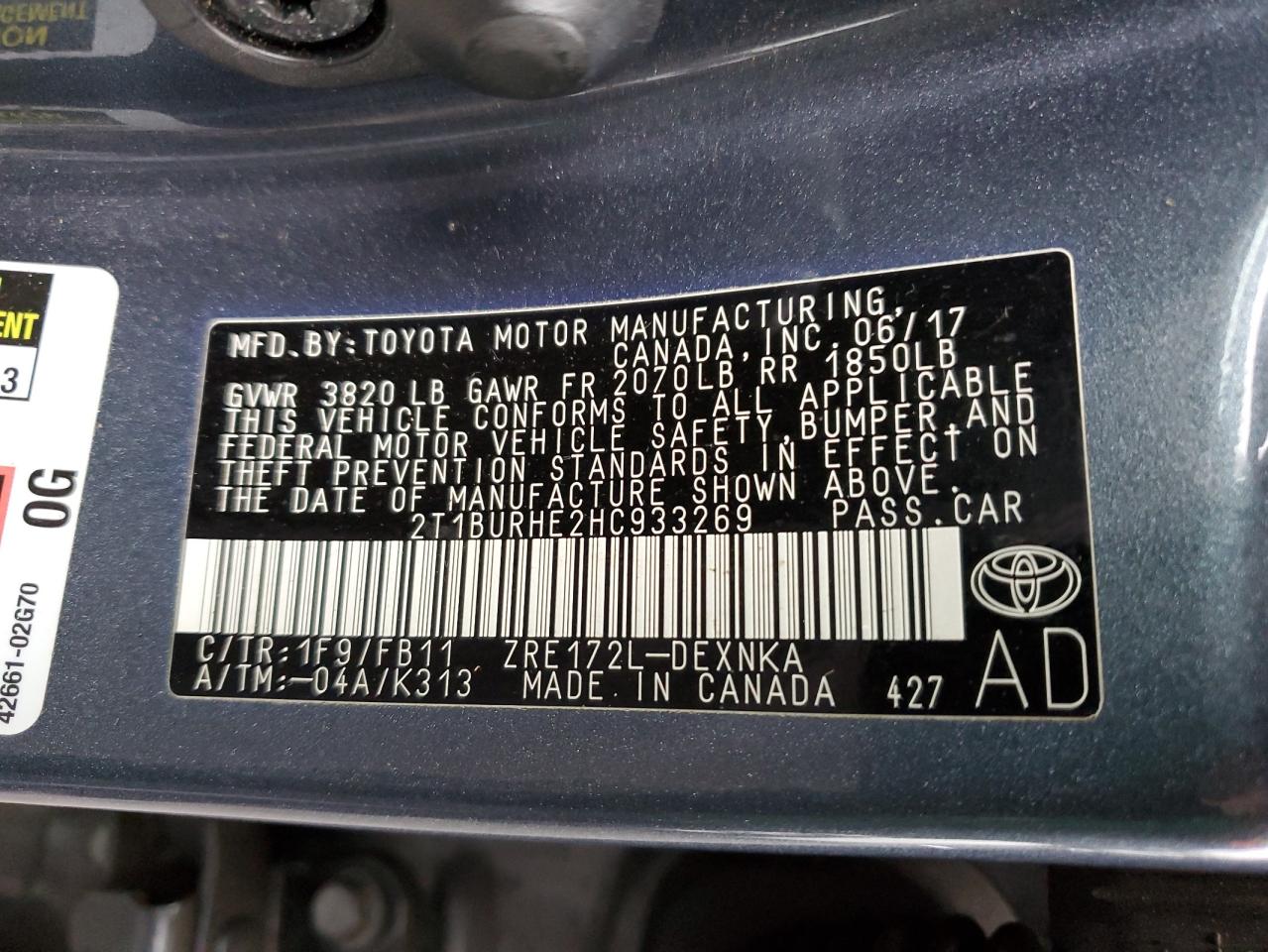- ВИН: 2T1BURHE2HC******