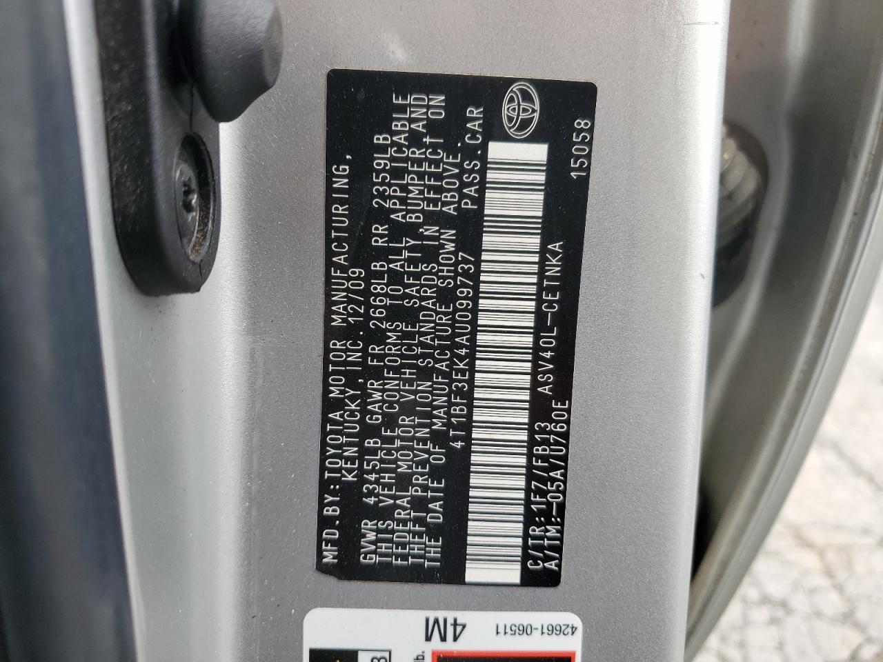 - ВИН: 4T1BF3EK4AU******