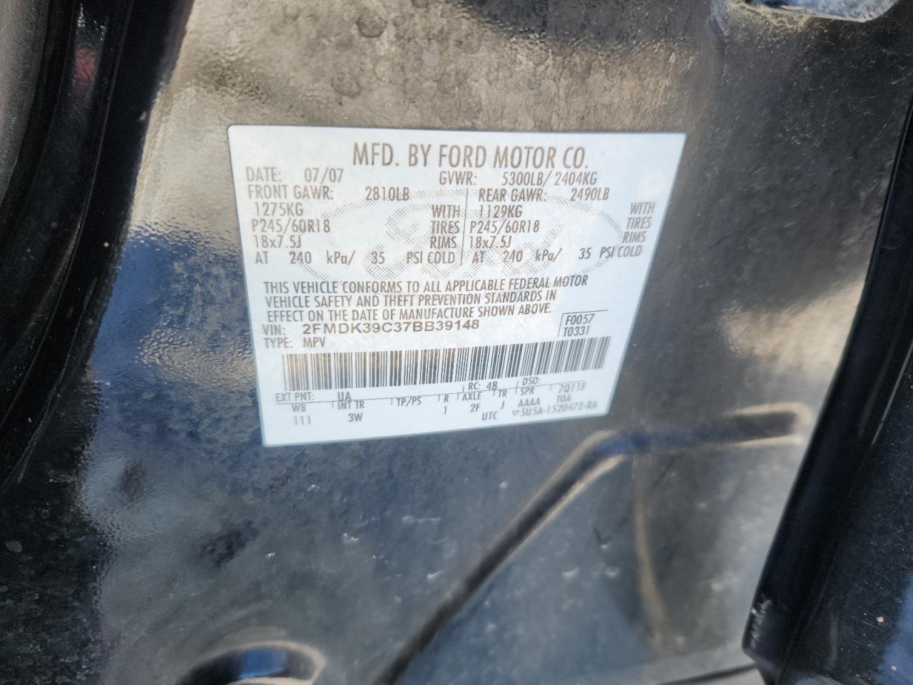 - ВИН: 2FMDK39C37B******
