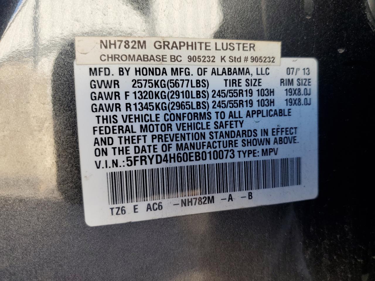 - ВИН: 5FRYD4H60EB******