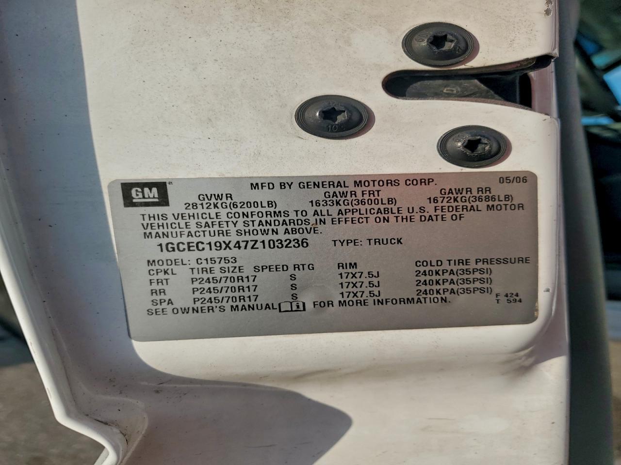 - ВИН: 1GCEC19X47Z******
