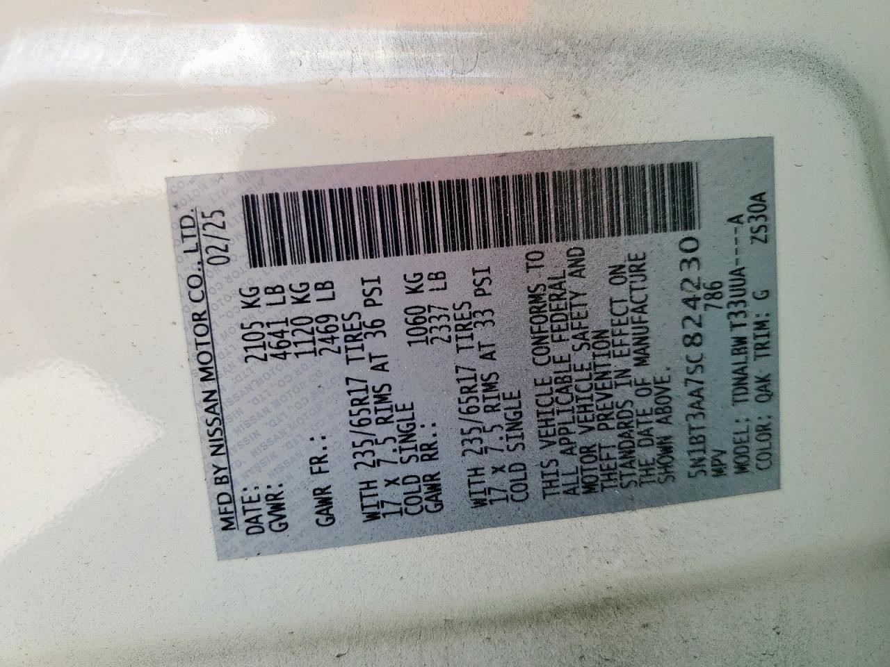 - ВИН: 5N1BT3AA7SC******