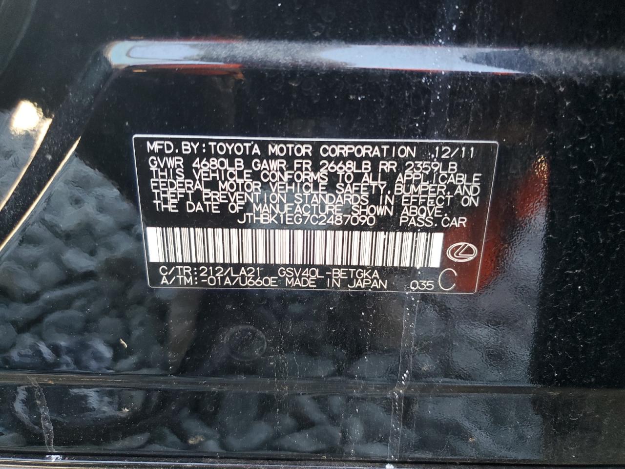 2012 LEXUS ES 350 из США