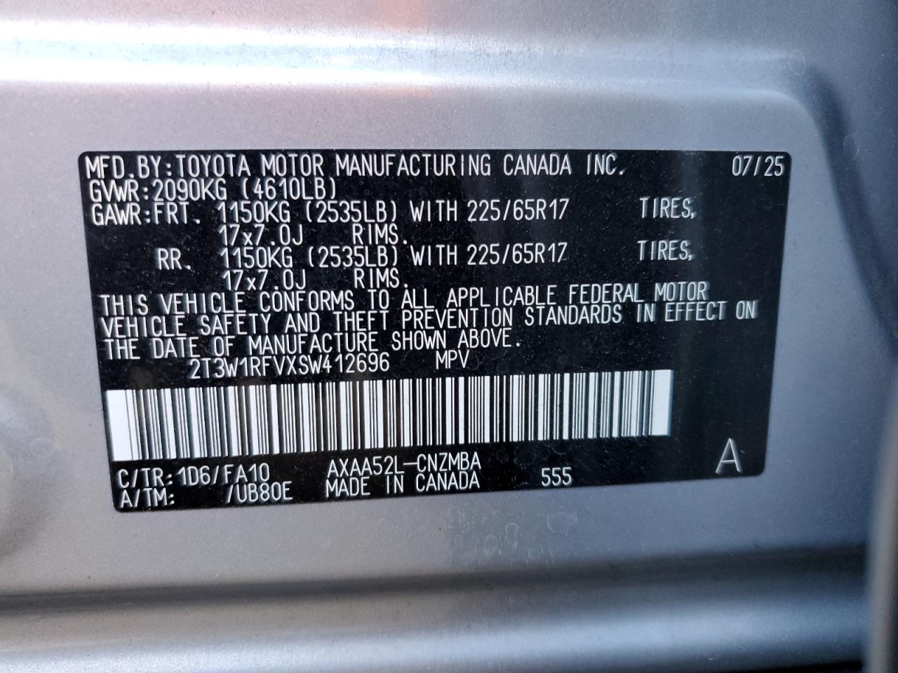 - ВИН: 2T3W1RFVXSW******