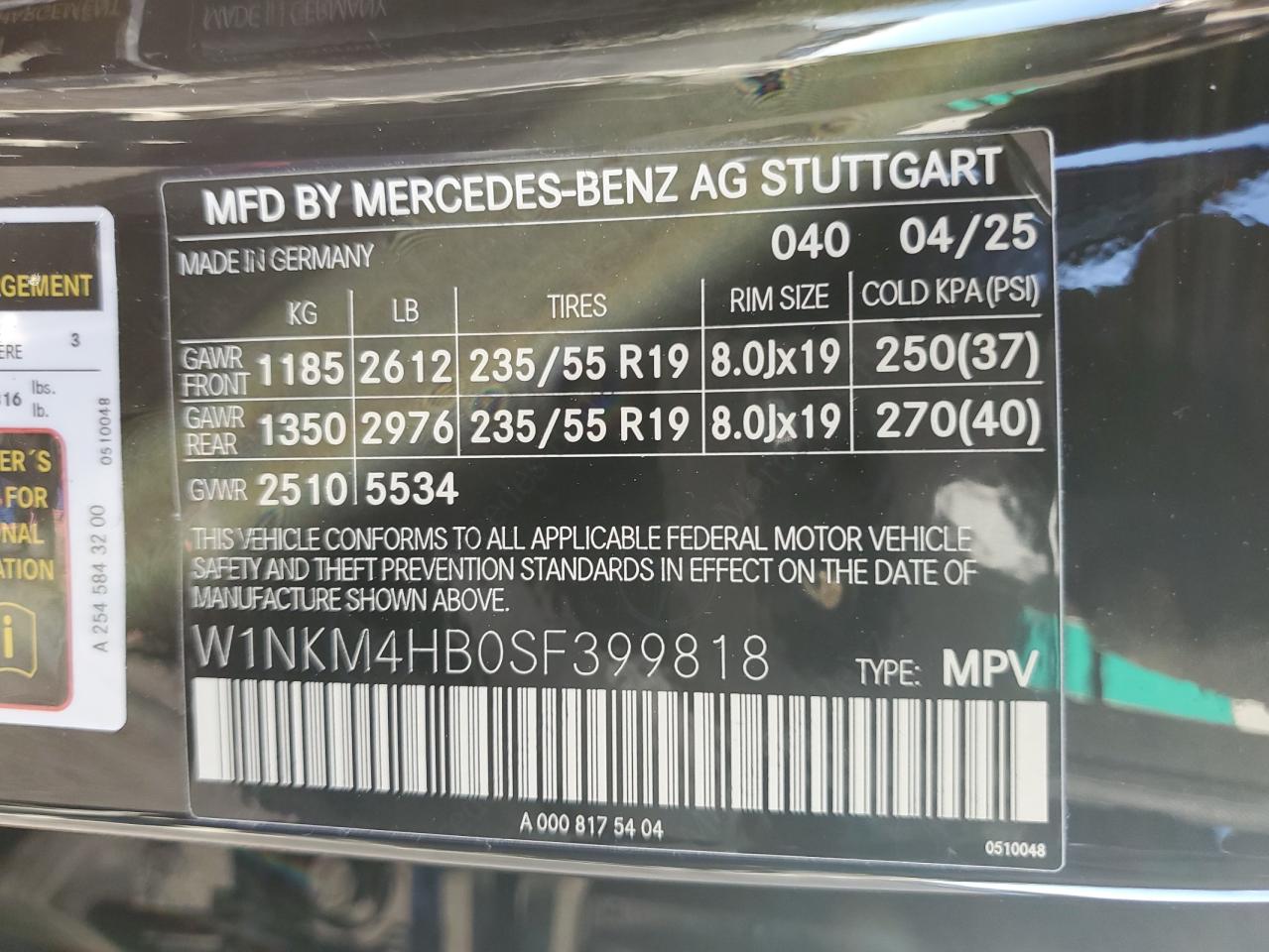 - ВИН: W1NKM4HB0SF******