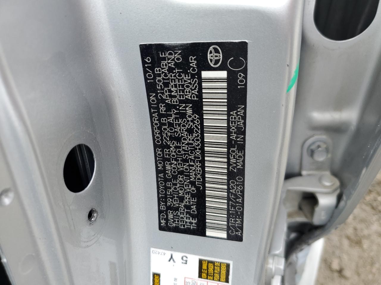 - ВИН: JTDKBRFUXH3******