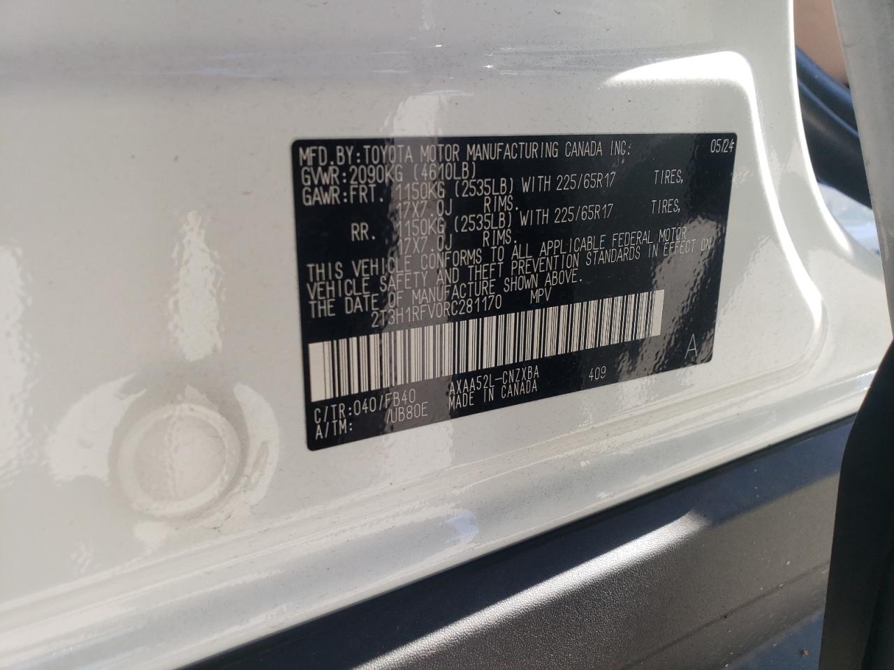 - ВИН: 2T3H1RFV0RC******