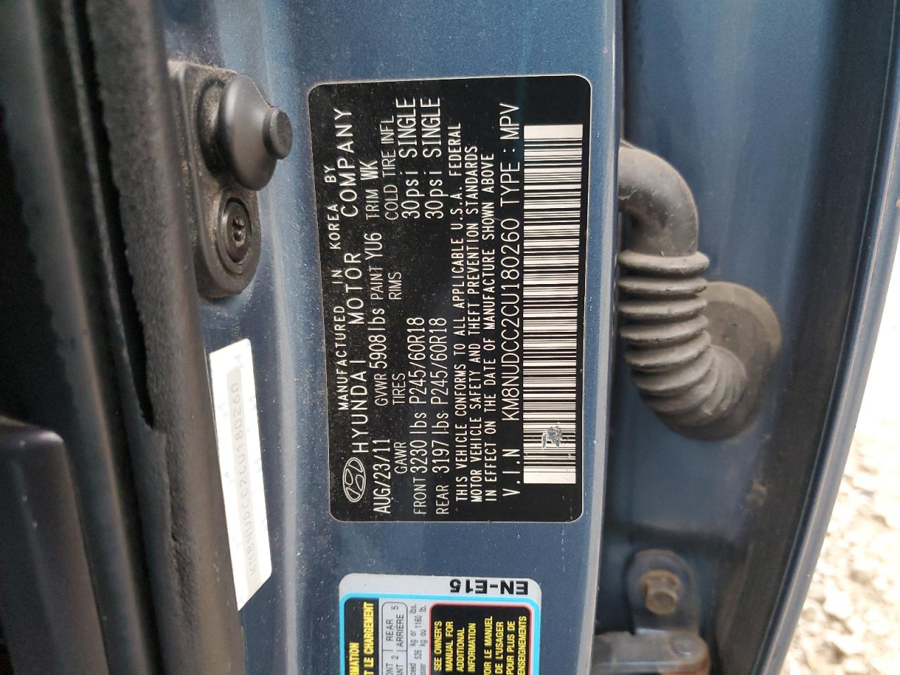 - ВИН: KM8NUDCC2CU******
