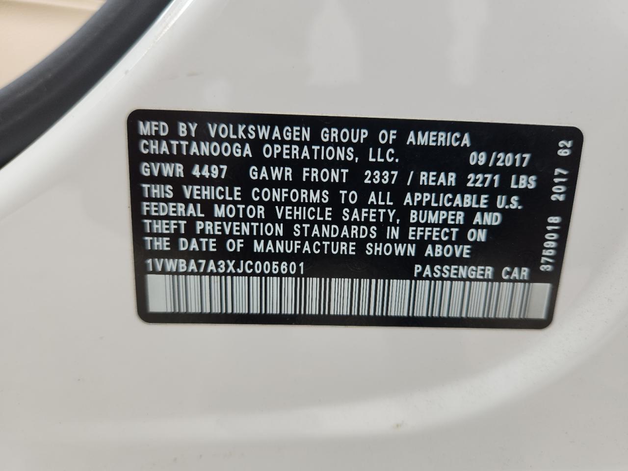 - ВИН: 1VWBA7A3XJC******