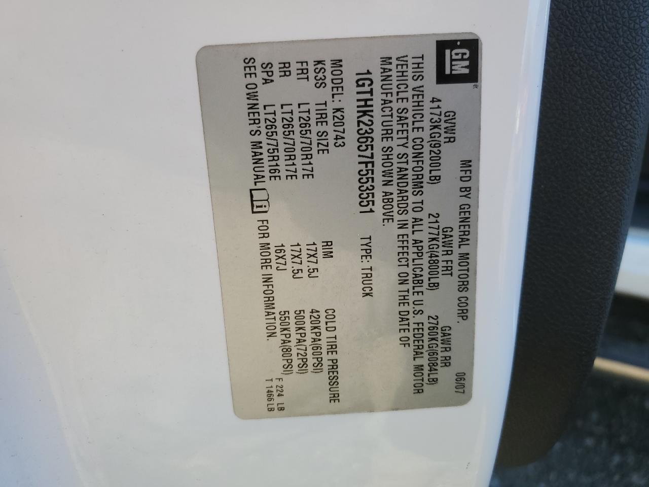 - ВИН: 1GTHK23657F******