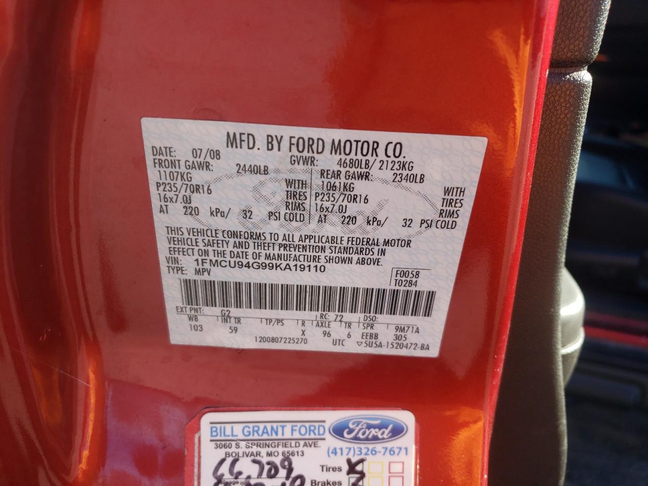- ВИН: 1FMCU94G99K******