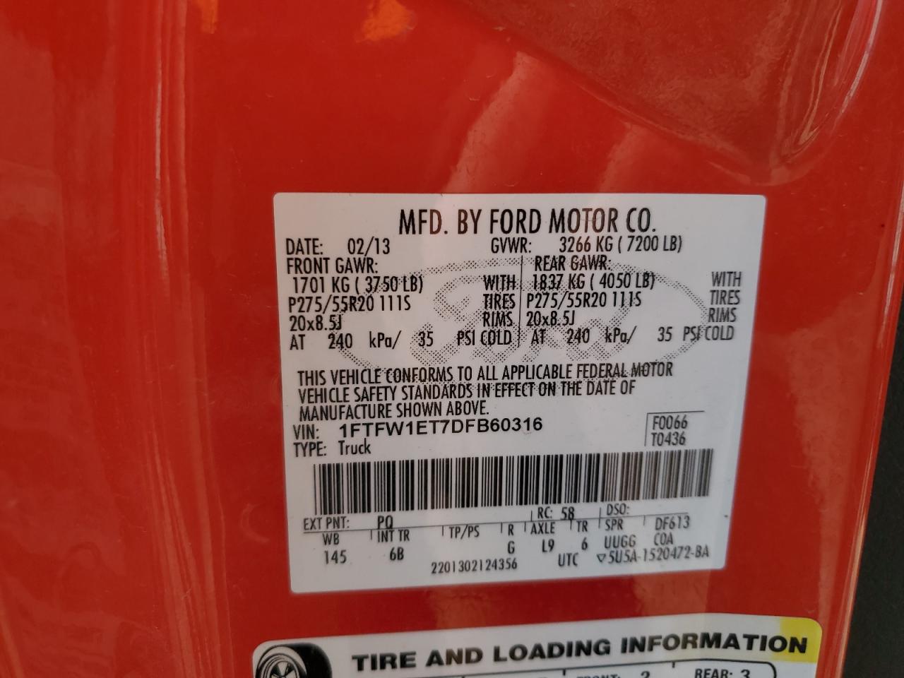 - ВИН: 1FTFW1ET7DF******