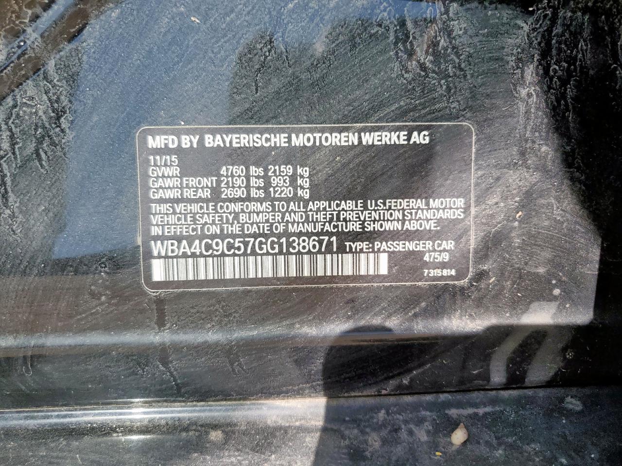 - ВИН: WBA4C9C57GG******