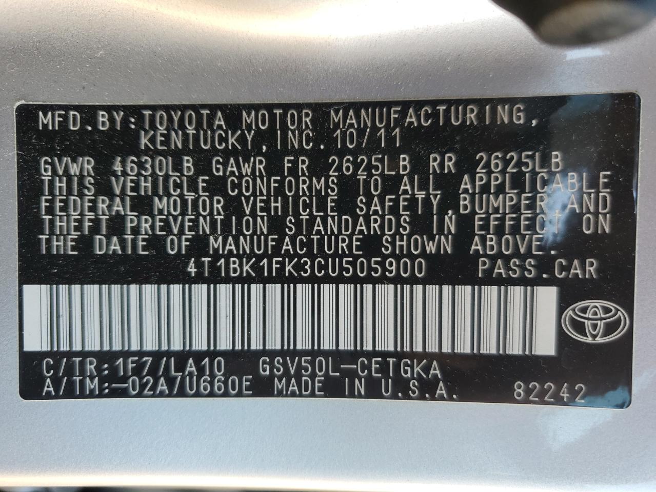- ВИН: 4T1BK1FK3CU******