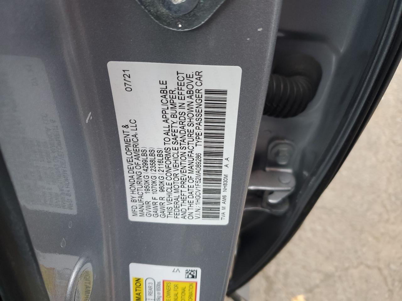 - ВИН: 1HGCV1F52MA******