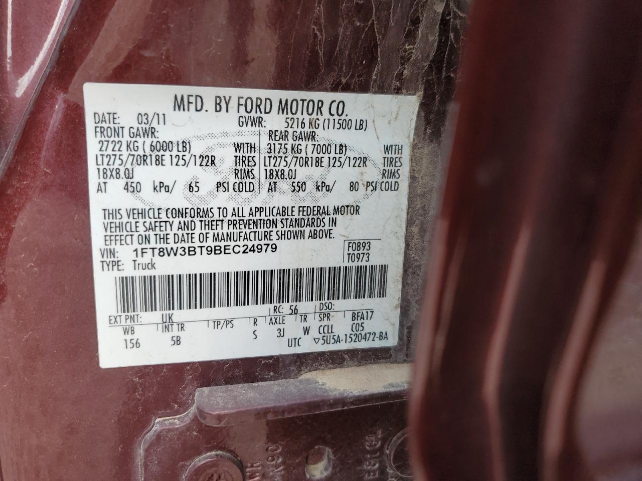 - ВИН: 1FT8W3BT9BE******