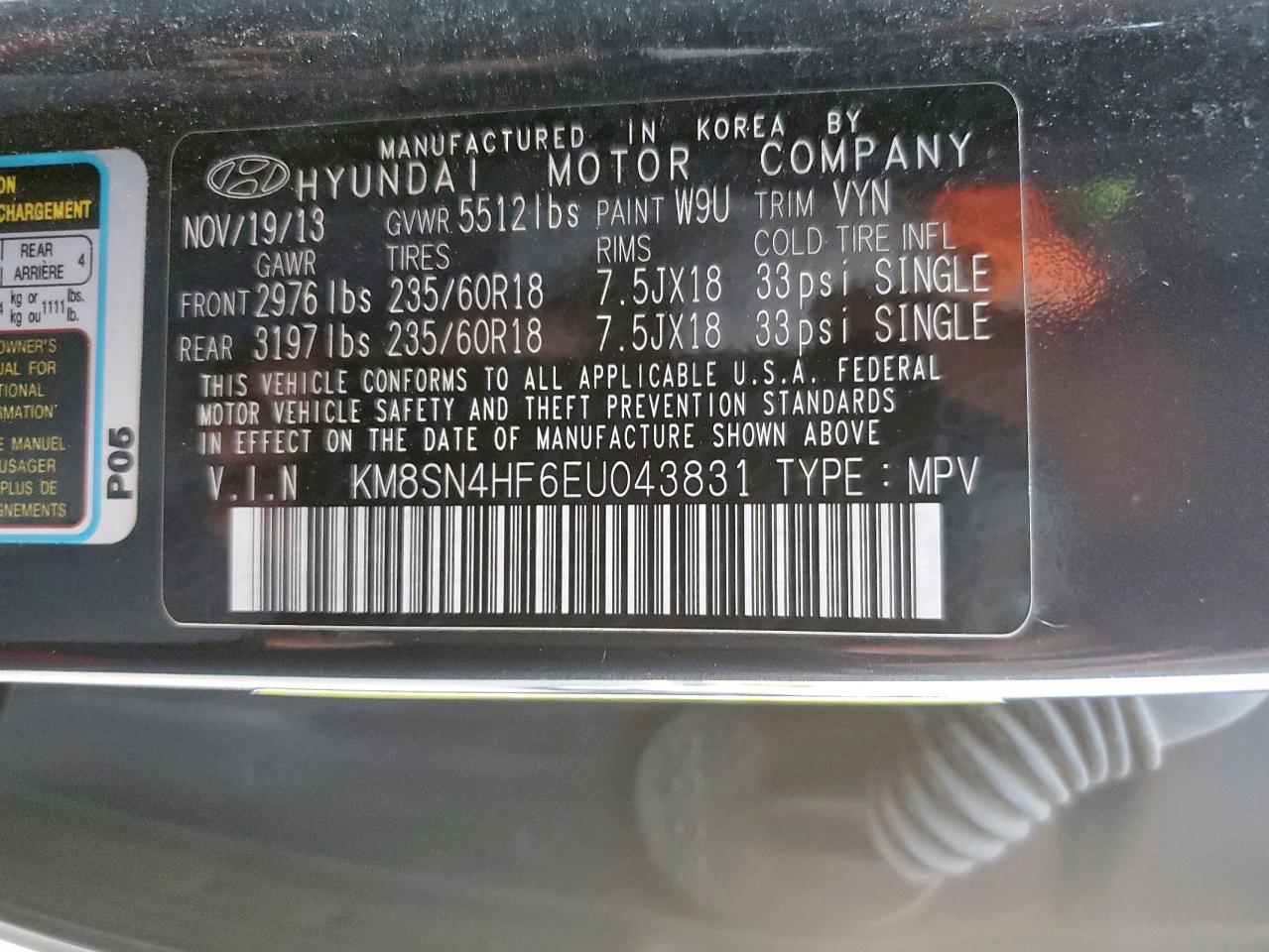 - ВИН: KM8SN4HF6EU******