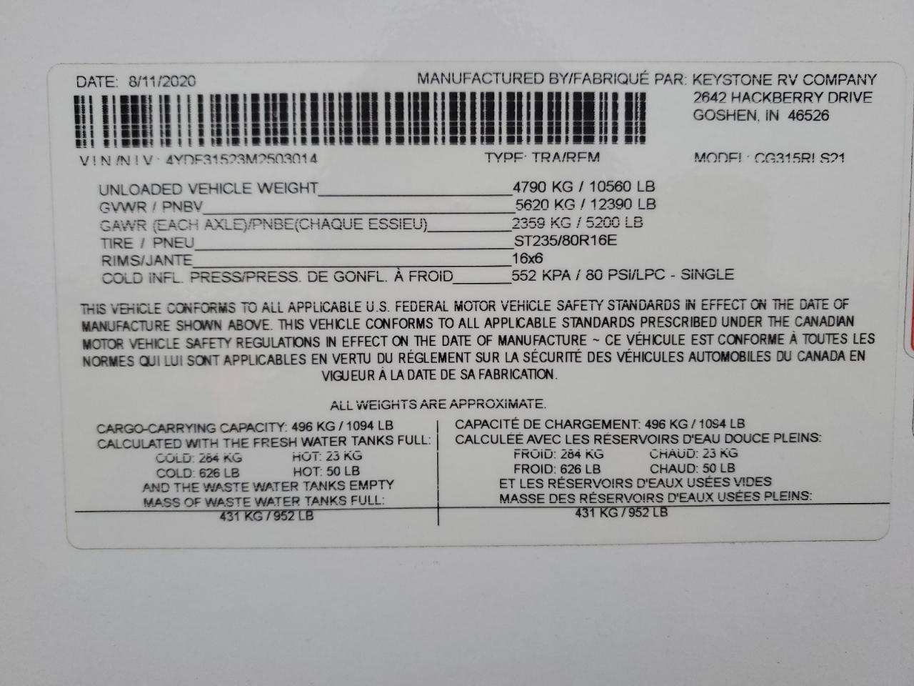 - ВИН: 4YDF31523M2******