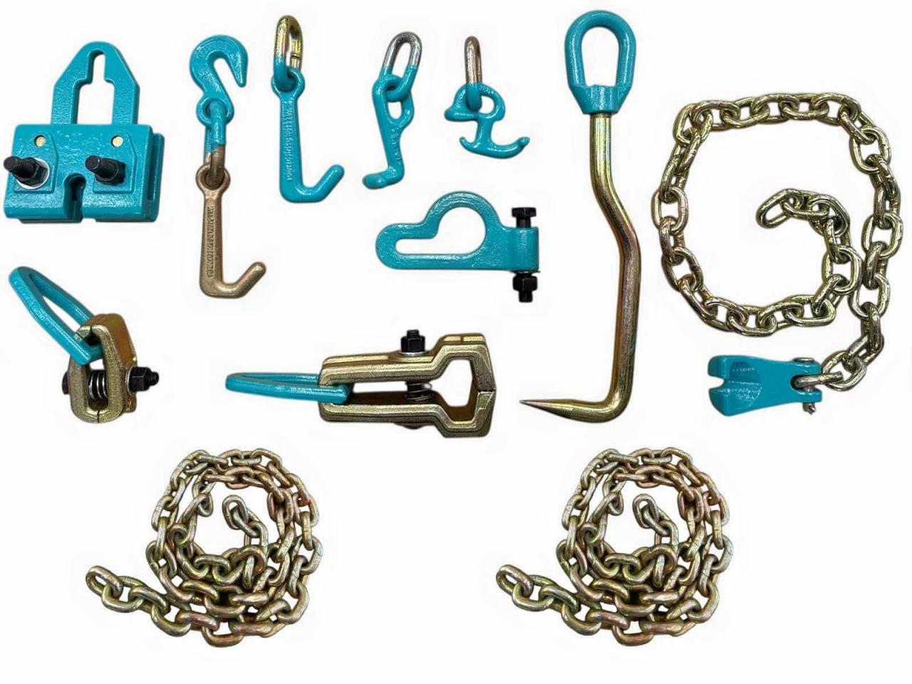 2025 4 POT FRAME PULLER + AIR JACK + RATCHET + CLAMPS & TOOLS + CHAINS