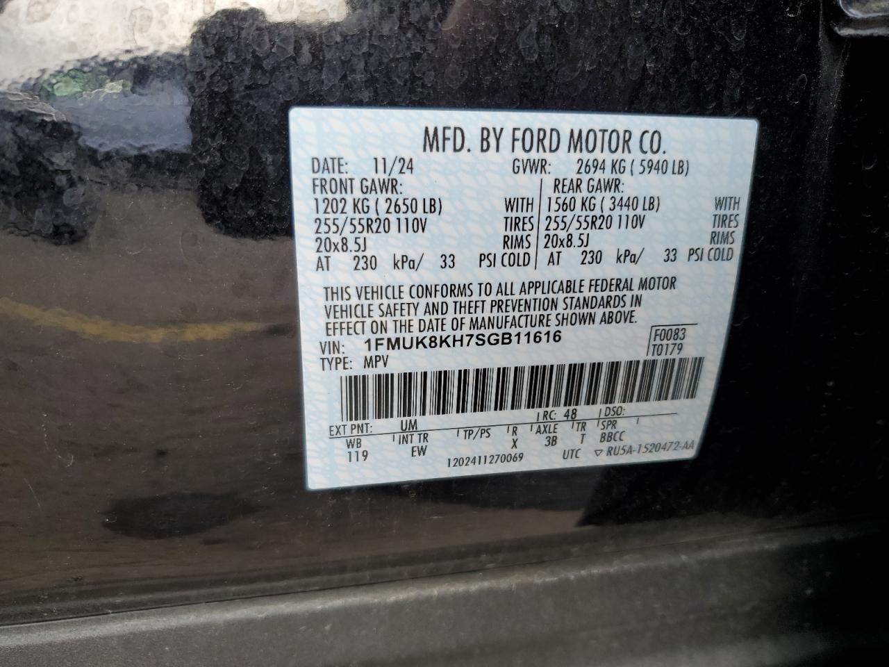 - ВИН: 1FMUK8KH7SG******