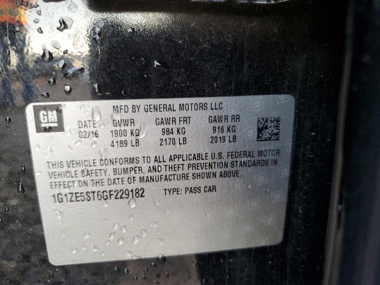 - ВИН: 1G1ZE5ST6GF******